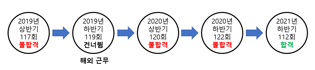 2019년 117회 면접시험보고 나서 '이 정도면 붙을 것 같다.'라는 느낌이 있었지만 예상과는 달리 불합격 하였고,